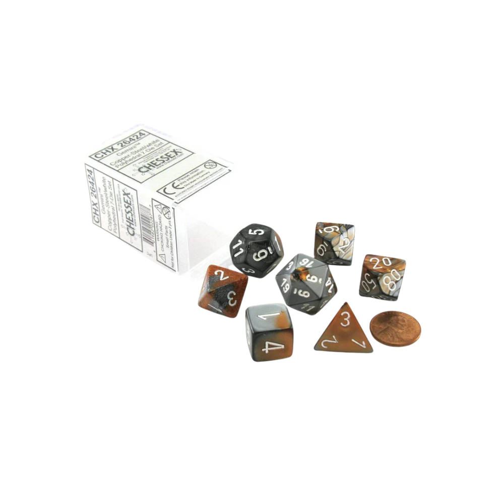 Gemini dice look, feel, and roll well and will be a great addition to any game or collection. All dice read from the top for easy comprehension. Sharp edges allow for easy shape recognition and the numbers are about as large as possible on each face. This polyhedral set contains one D20, one D12, two D10 (00-90 and 0-9), one D8, one D6, and one D4.
