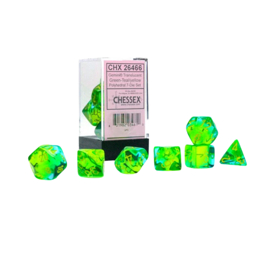 CHX26466 - Chessex 7 Die Set Gemini Translucent Green-Teal/Yellow
