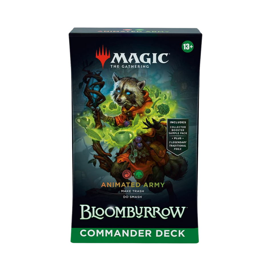 In Commander, four players come together to show their strength and strategy, with one player coming out on top. Each 100-card ready-to-play Bloomburrow™ Commander Deck makes it easy for Commander fans in your store to grab a deck and play right away.