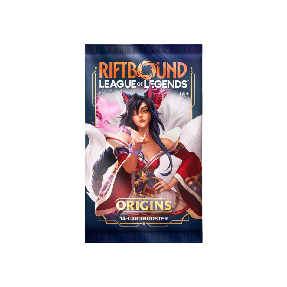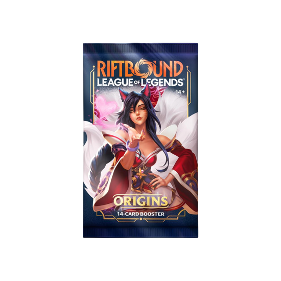Origins, the debut set of Riftbound: League of Legends TCG, brings Champions to the battlefield like never before. Powering up your deck with 14-card booster packs that pull from a pool of nearly 300 cards, this set features a wide variety of art from legendary League of Legends artists. Will you pull an epic game-changer, a stunning alternate art card, or a pack loaded with power?